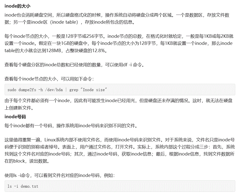 理解inode,要从文件储存说起。文件储存在硬盘上,硬盘的最小存储单位叫做"扇区"(Sector),每个扇区储存512字节(相当于0.5KB)。