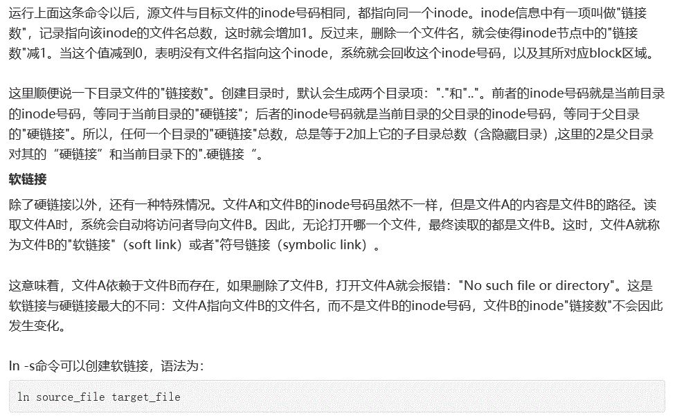 文件数据都储存在"块"中,那么很显然,我们还必须找到一个地方储存文件的元信息,比如文件的创建者、文件的创建日期、文件的大小等等。这种储存文件元信息的区域就叫做inode,中文译名为"索引节点"。